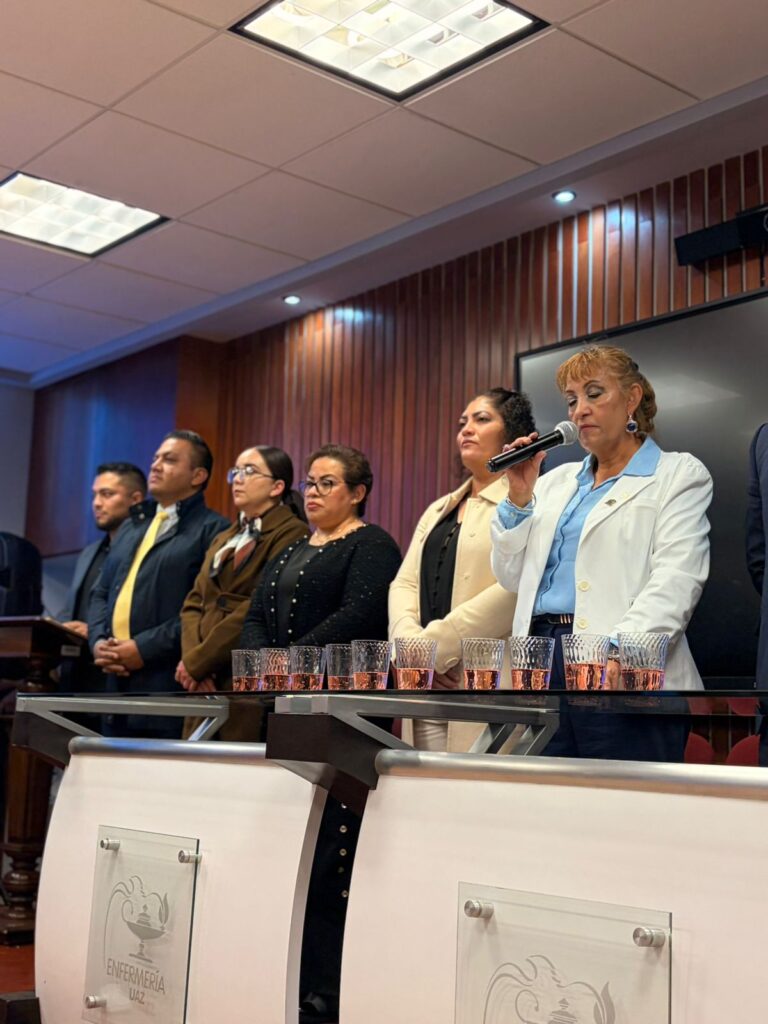 Asimismo, la directora Esther Palacios destacó que la Unidad Académica de Enfermería de la UAZ siempre estará a sus órdenes, reiterando con orgullo que la escuela es, fue y seguirá siendo su casa, acompañándolos no solo en su formación inicial, sino también en su crecimiento profesional continuo.