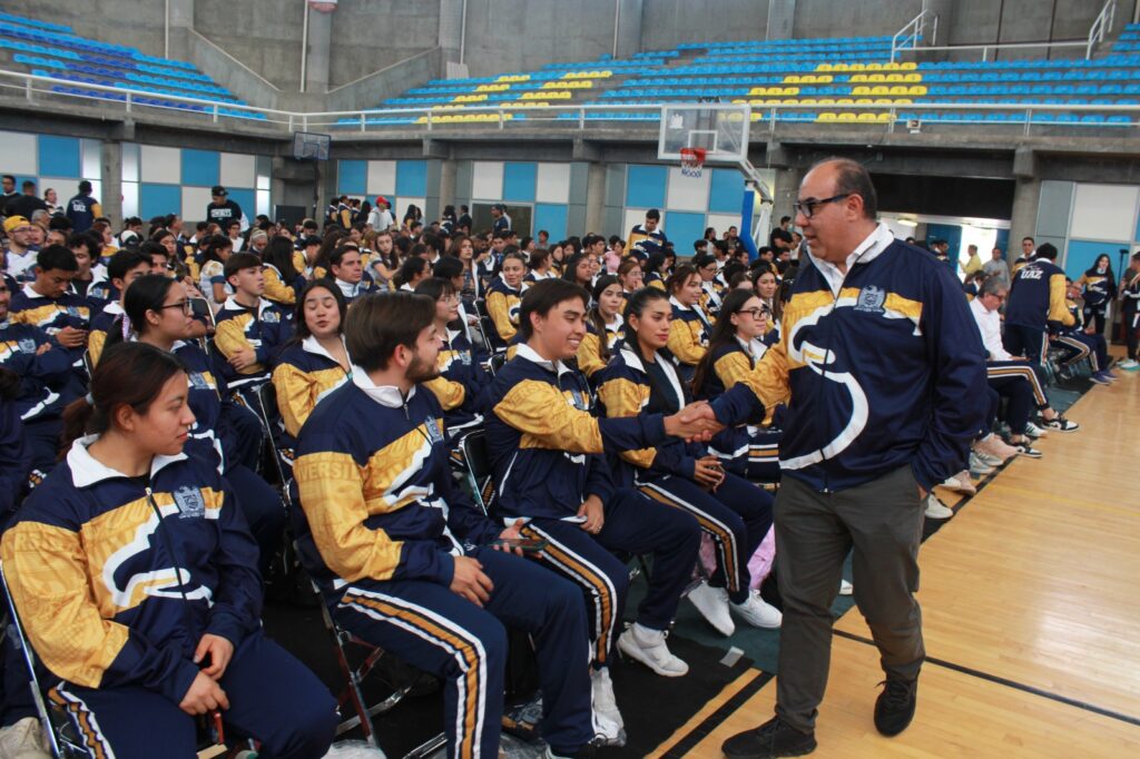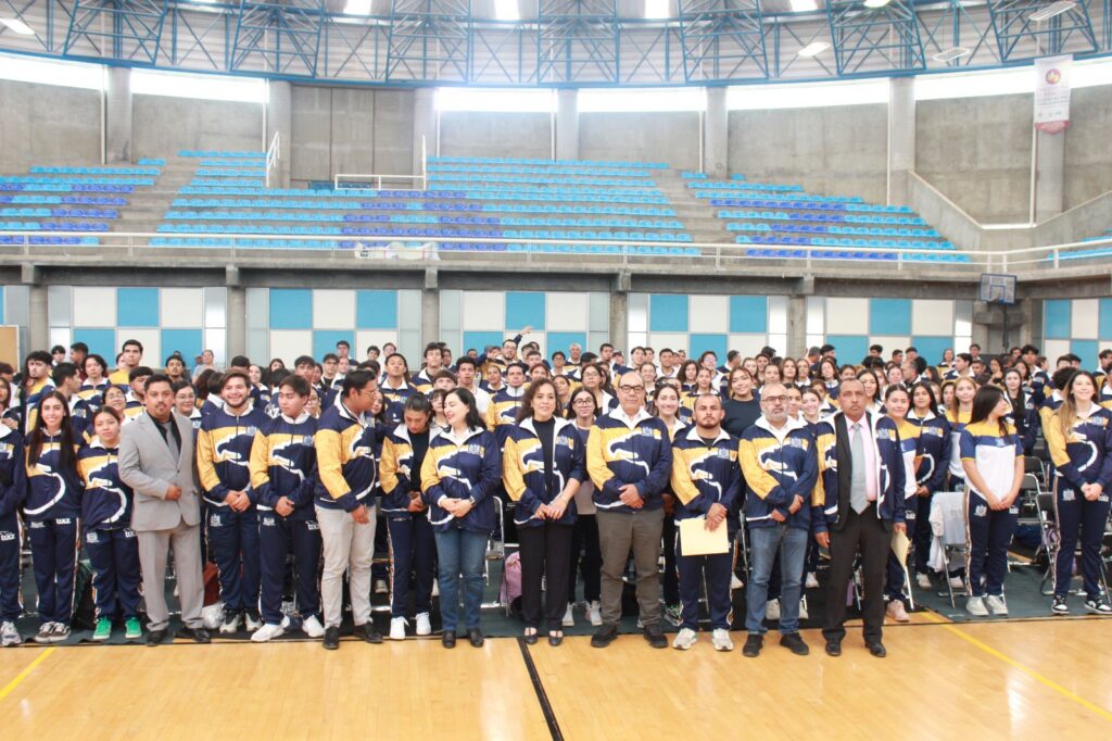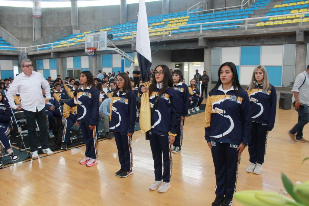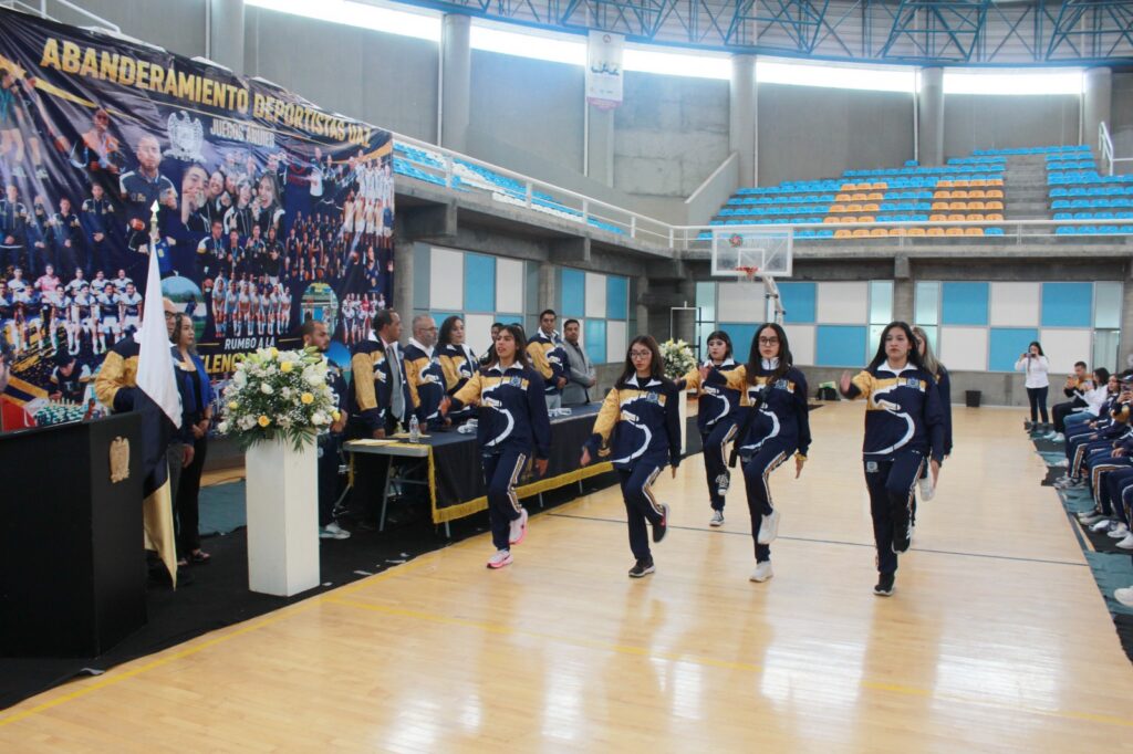 El momento culminante fue la entrega del estandarte a una escolta integrada por atletas medallistas de alto rendimiento, encabezada por Marcela Guerrero Hernández, oro en ANUIES 2025 y subcampeona nacional de Taekwondo; Mirna Graciela Ruiz Varela, oro en Universiada Nacional 2024 y ANUIES 2025 en Kickboxing.
