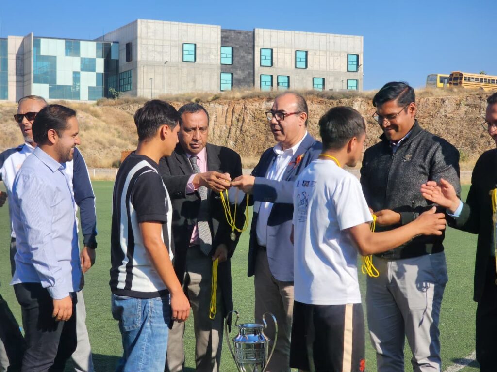 Esta tarde, el rector de la Universidad Autónoma de Zacatecas (UAZ), Ángel Román Gutiérrez, encabezó la entrega de premios a los equipos ganadores del Torneo Universitario de Fútbol, tras la realización de las finales correspondientes al cierre del semestre.