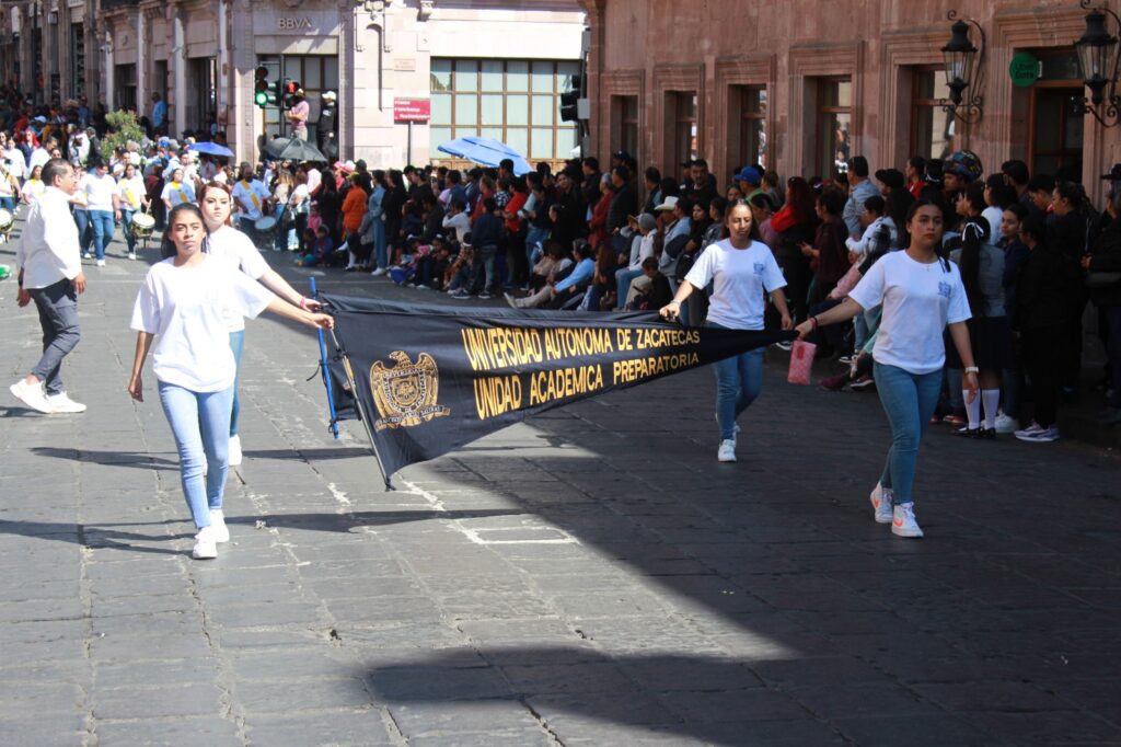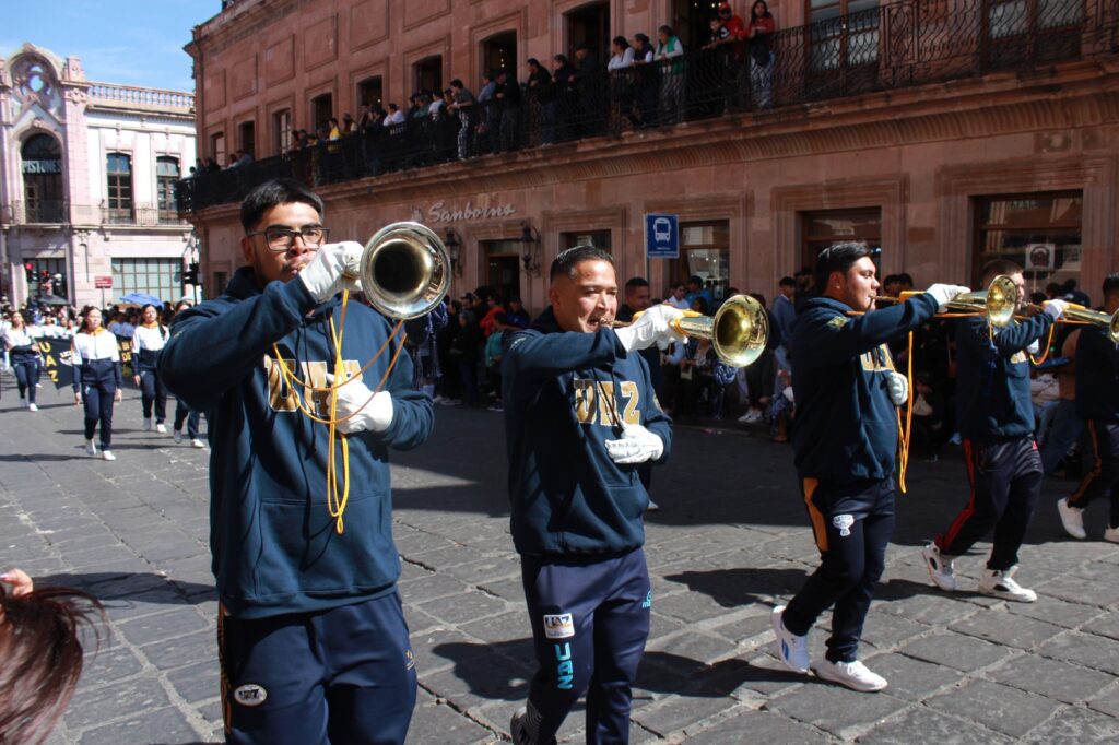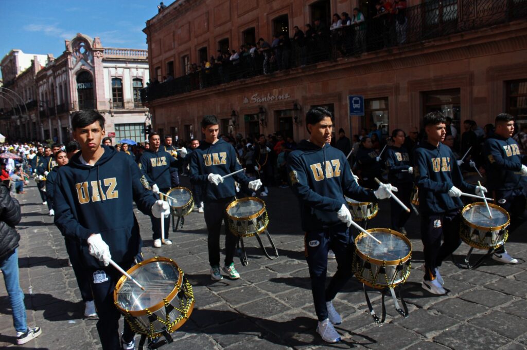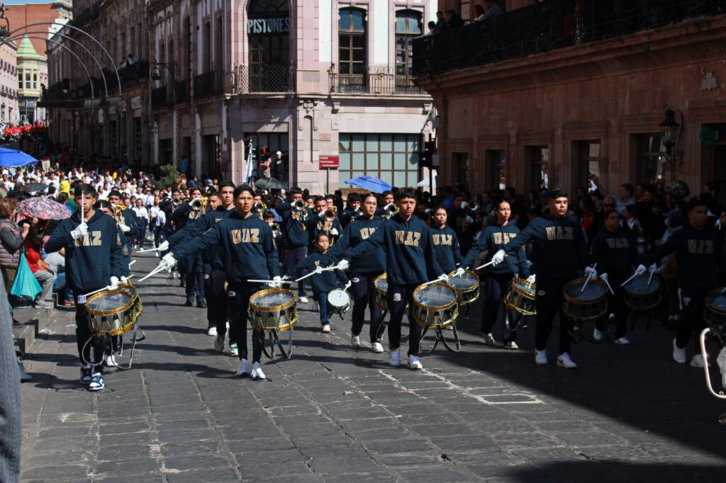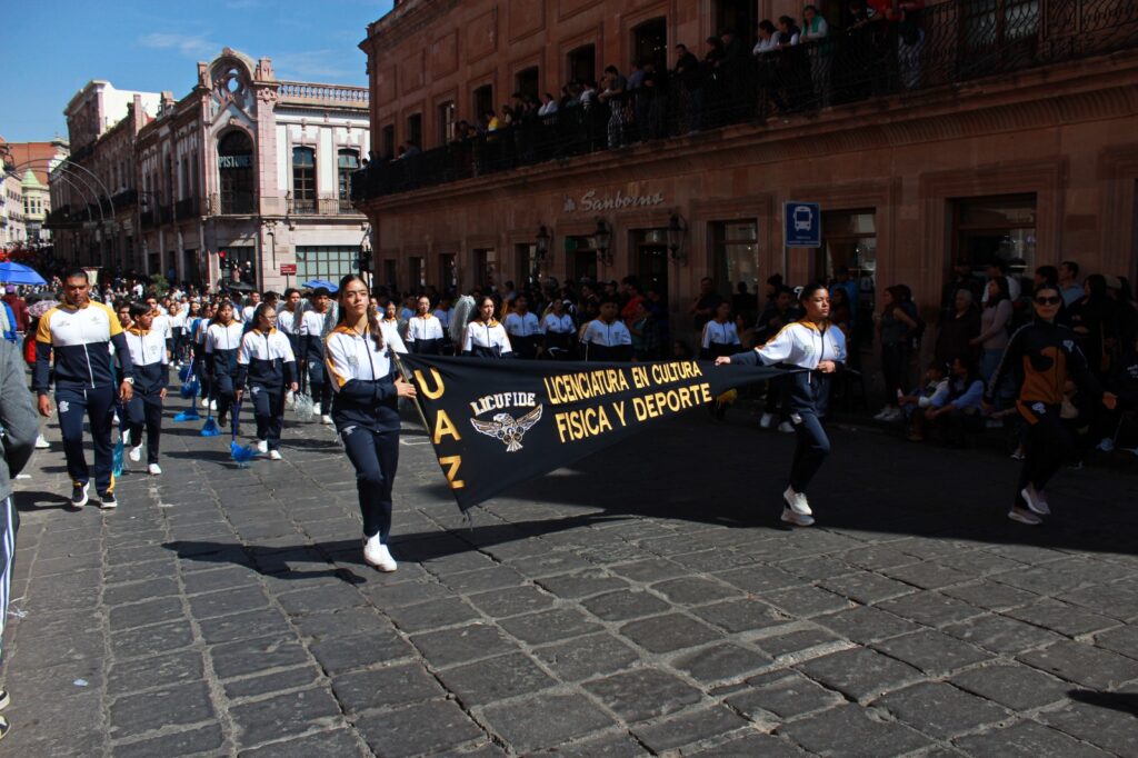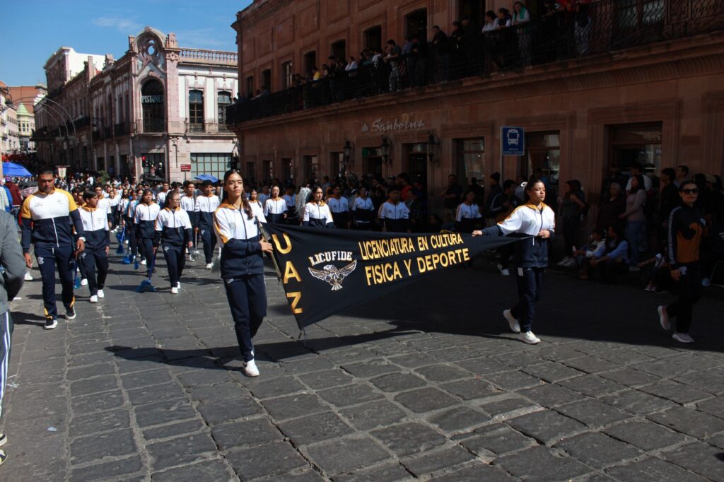 Con la participación de estudiantes y docentes, la UAZ reafirmó su papel como institución formadora de ciudadanía y promotora de los valores históricos que dieron origen a la vida democrática del país. Portando con dignidad los colores universitarios, contingentes de diversas unidades académicas desfilaron en un ambiente de respeto, entusiasmo y unidad.