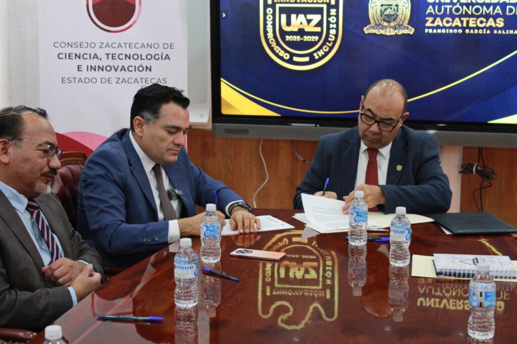 Con el propósito de impulsar la innovación tecnológica y fortalecer los procesos democráticos universitarios, la Universidad Autónoma de Zacatecas (UAZ) y el Consejo Zacatecano de Ciencia, Tecnología e Innovación (COZCYT), formalizaron en la sala de juntas de Rectoría la firma de un convenio general de apoyo y colaboración, que marca un hito en la vinculación entre ambas instituciones.
