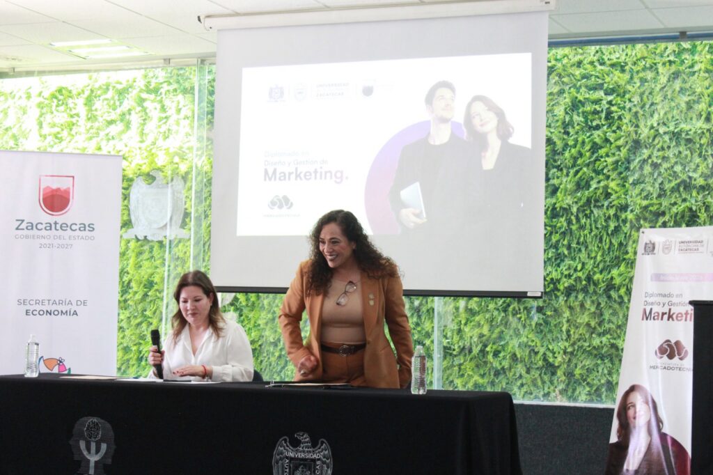 Con el propósito de fortalecer el emprendimiento, la innovación y la vinculación académica con el sector productivo del estado, el programa de la Licenciatura en Mercadotecnia de la Universidad Autónoma de Zacatecas (UAZ), presentó el diplomado en Diseño y Gestión de Marketing, en colaboración con la Secretaría de Economía (SEZAC), instancia con la que además se firmó un convenio de colaboración.