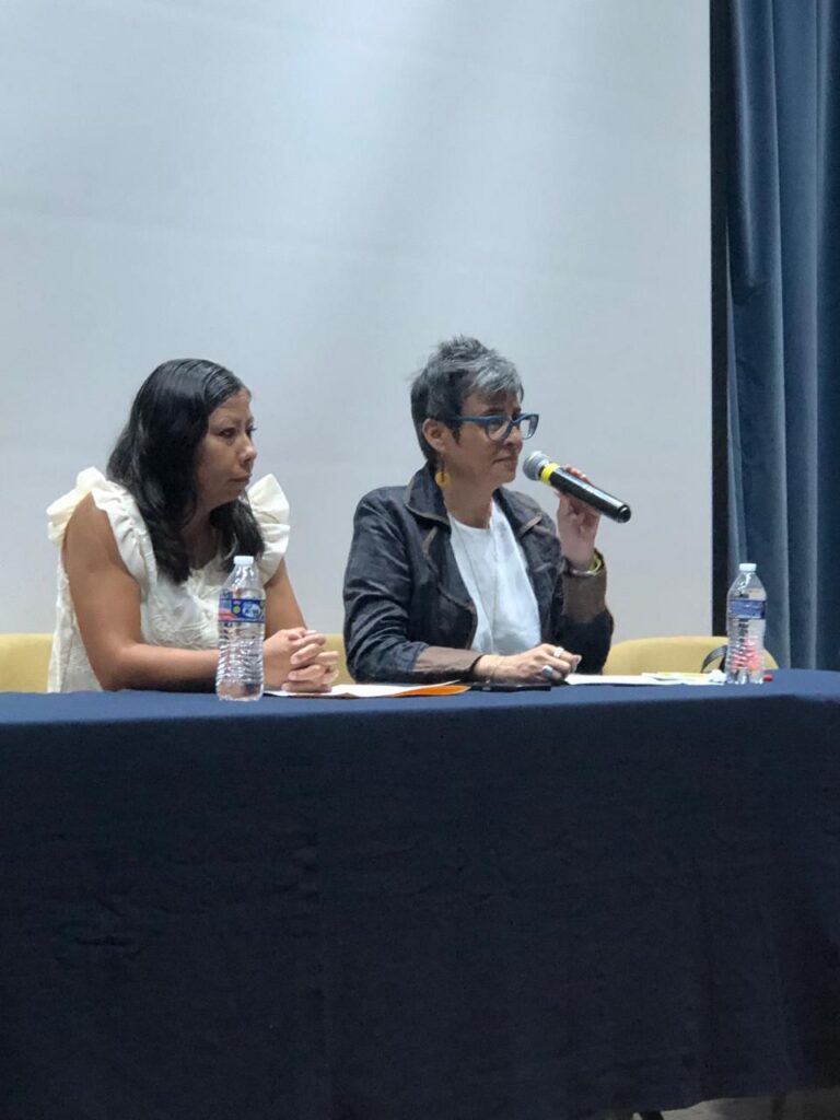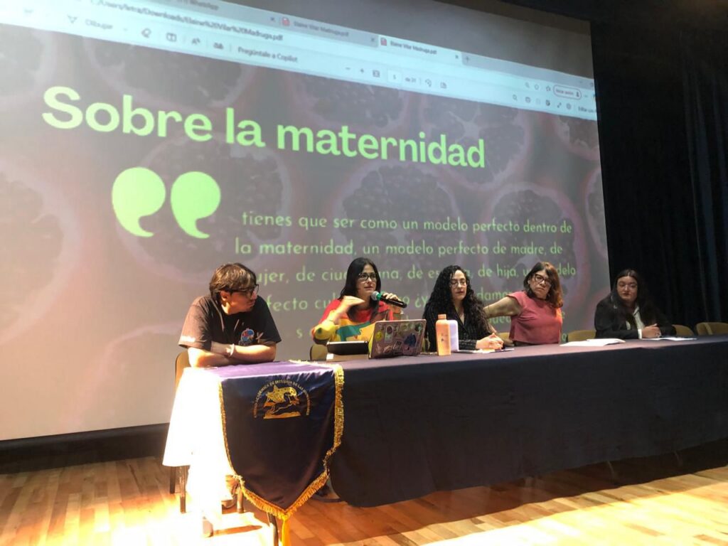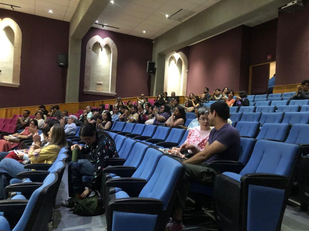 La docente investigadora Elsa Leticia García Argüelles orientó su discurso en torno a la migración y autoría. Comentó que la escritora habla del universo femenino hecho de múltiples violencias: cultural, patriarcal, física y de la domesticidad asfixiante. La reconoció dentro de la categoría de escritoras extranjeras de su propia tierra, de su propio cuerpo.