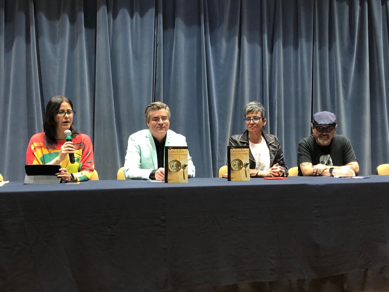 El director de la UAEH, Alberto Ortiz, y el docente investigador de la UAZ, Gonzalo Lizardo, comentaron el libro de la autora Cecilia Eudave, “El verano de la serpiente”. La escritora misma dio comentarios introductores a la lectura de su novela, organizada como varios relatos que se unen. Recurriendo a metáforas como: “A cada capítulo el lector cambia de piel”, “El libro cambia de piel en cada lector” o “Yo, como autora cambio de piel constantemente”, abundó sobre la pregunta de si un autor de ficción habla de sí por medio de sus personajes, respondiendo que “uno siempre habla desde el yo para representar al otro”.