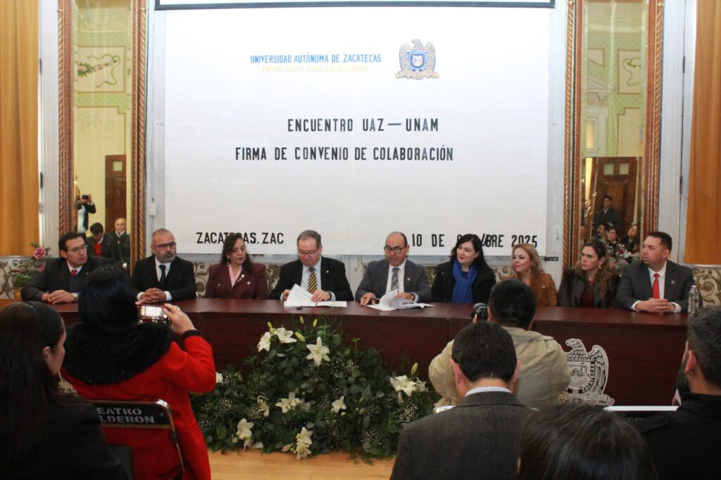 Con el firme propósito de fortalecer la cooperación académica y el desarrollo científico, la Universidad Autónoma de Zacatecas (UAZ) y la Universidad Nacional Autónoma de México (UNAM), formalizaron hoy un convenio de colaboración que reafirma su vínculo histórico y proyecta nuevas oportunidades de trabajo conjunto.