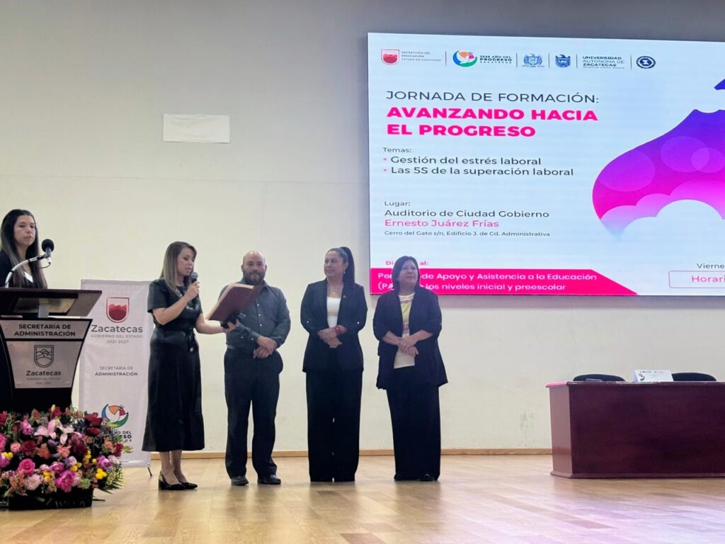 Dirigida al personal de apoyo y asistencia a la educación (PAAE) de los niveles inicial y preescolar de la Secretaría de Educación del Estado de Zacatecas (SEDUZAC), este día se llevó a cabo, en el Auditorio de Ciudad Gobierno “Ernesto Juárez Frías”, una jornada de capacitación con las conferencias “Las 5S de la superación laboral” y “Gestión del estrés laboral”.